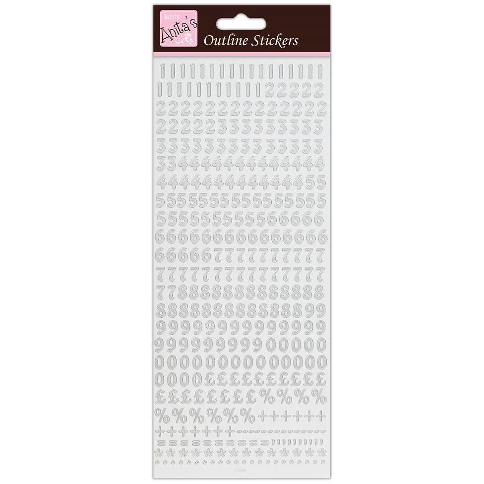 Anitas Outline Stickers – Small Numbers – Silver on White