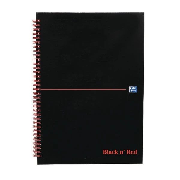 This stylish, professional Black n’ Red A4 notebook contains 140 pages of high quality 90gsm Optik paper, which is designed for minimum ink bleed through and is ruled for neat notes. The pages are also indexed A-Z for quick and easy referencing. The sturdy hardback notebook is wirebound allowing it to lie flat. This pack contains 5 A4 notebooks.