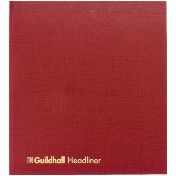 Ideal for accounts with the same headings on every page, the 80 page Exacompta Guildhall Headliner Account Book has cutaway pages enabling to write out your headings once and have them show through on every page. This improves clarity and prevents errors in hand written accounts as the heading need only be written out once. Made from 95gsm ledger quality paper, each page is ruled with 21 cash columns across opening. The book is bound in a durable vinyl burgundy cover and has a sewn binding to prevent pages being removed.