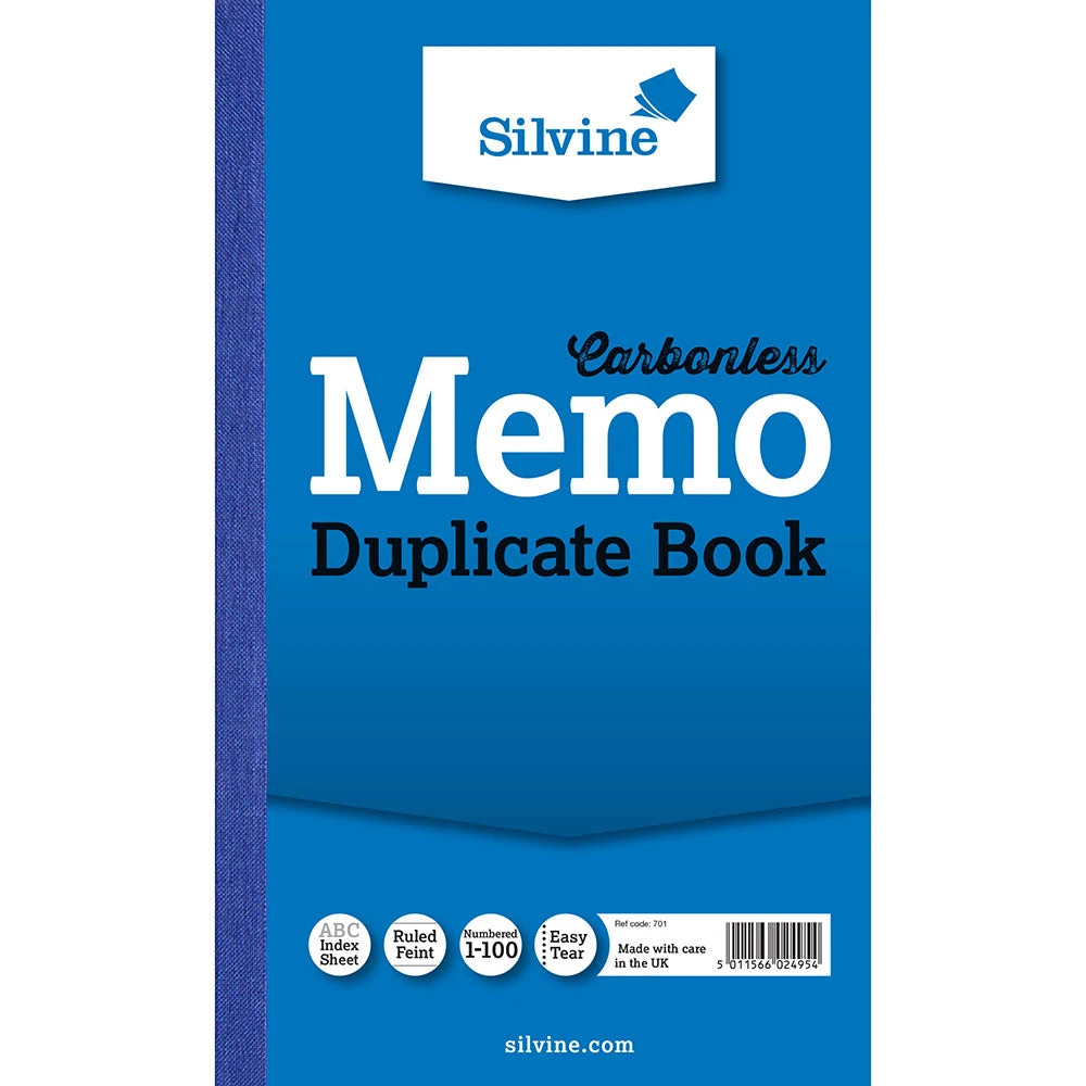Books, Pads & Albums Silvine Carbonless Duplicate Memo Book Ruled 81/4x5in