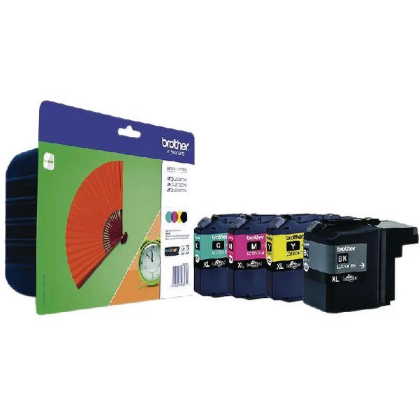 This Brother Value Pack contains a complete set of one LC129XL black ink cartridge and three LC125XL cyan, magenta and yellow ink cartridges for Brother inkjet printers. Each high yield cartridge provides up to 1,200 pages per colour cartridge and 2,400 pages from the black cartridge.