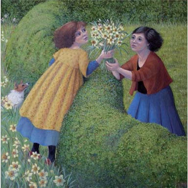 Canns Down Press Greetings Cards Marcelle Milo Gray – Two Neighbours With Daffodils