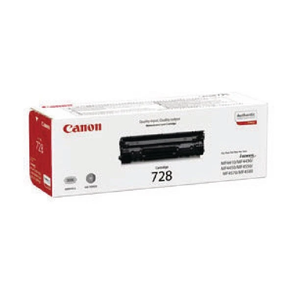 This Canon CRG728 Black Toner Cartridge is the ideal choice for economical print output from your Canon MF4400/4500 printer. Easy to fit, it is packed with enough toner to print up to 2,100 crisp, clean pages. As a genuine Canon consumable, you can rely on great performance and unparalleled reliability when you print.