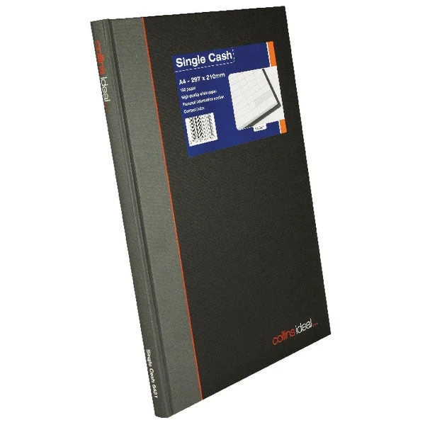 This A4 Black Single Cash Book from Collins Ideal is a high-quality case bound notebook ideal for accounting or general use. The 192 pages are high quality 80gsm paper with single cash rulings, while the casebound binding secures pages into the spine, reducing the danger of losing precious and important notes. The book is fully cased in durable geltex which not only protects the book itself but also provides a hard cover, ideal for note-taking while on the go.