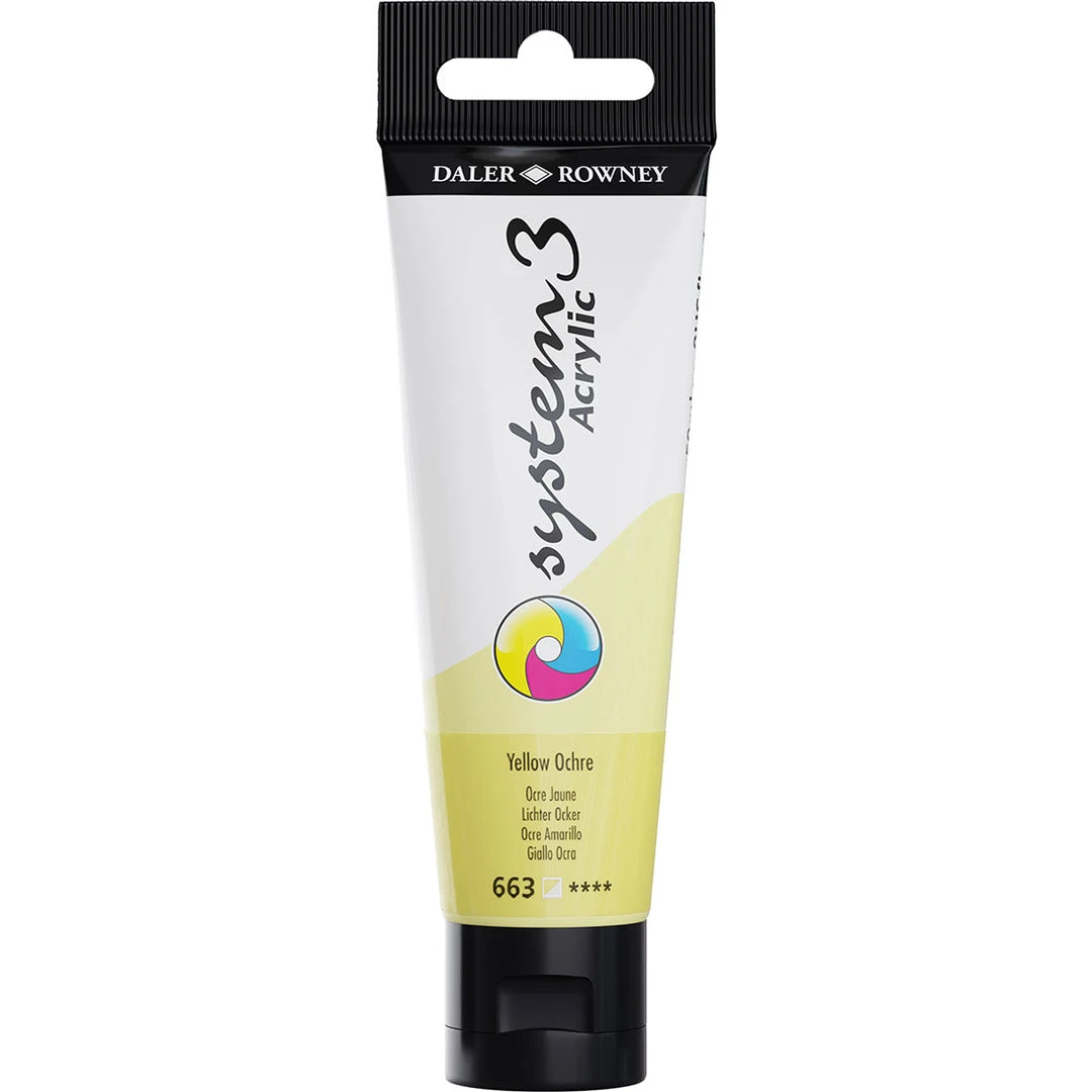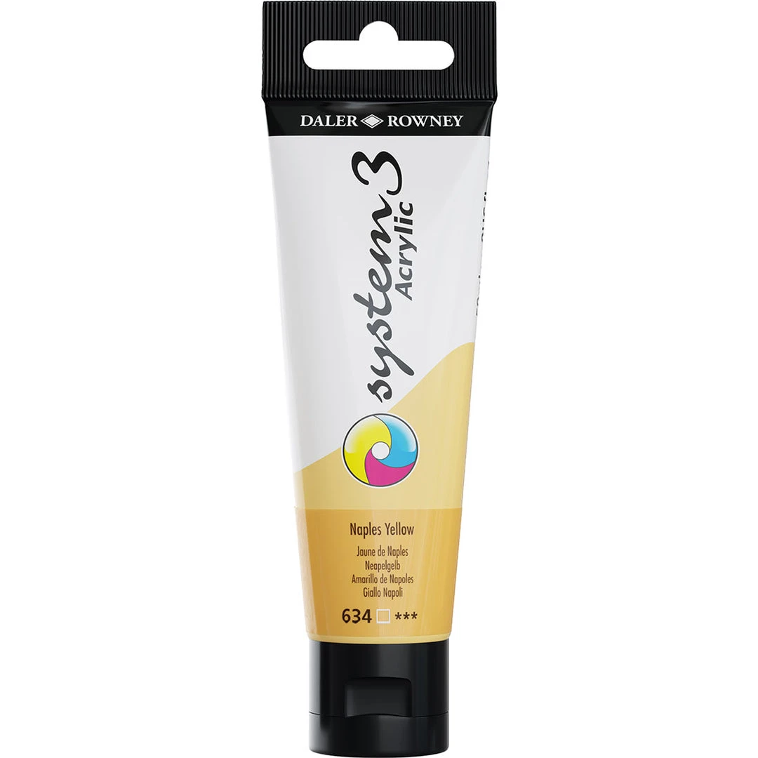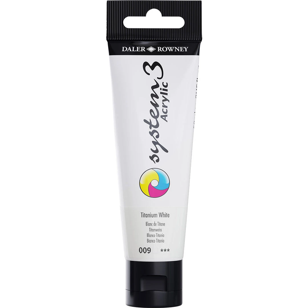 System 3 Acrylic Buff Titanium artists’ acrylic paint. Daler-Rowney System3 Acrylics are versatile water-based colours made from high quality pigments. System3 Acrylic colours are lightfast, permanent (ranking from 3 to 4 stars for most of the colours), opaque (10 opaque and 20 semi-opaque colours), flexible and quick drying, making them suitable for applications on multiple surfaces both indoor and outdoor.