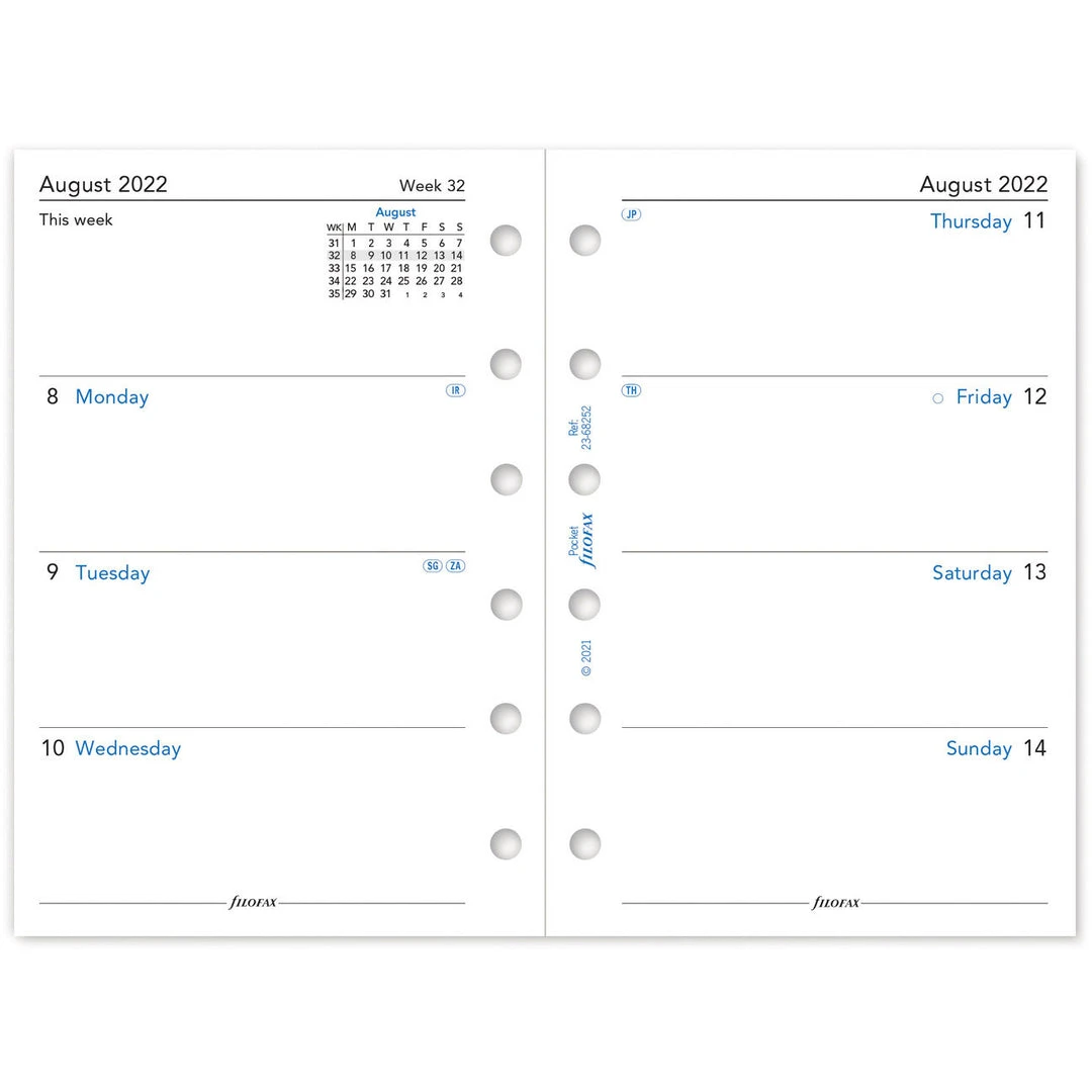Filofax diary refill week on two pages English mid year August 22 – July 23.