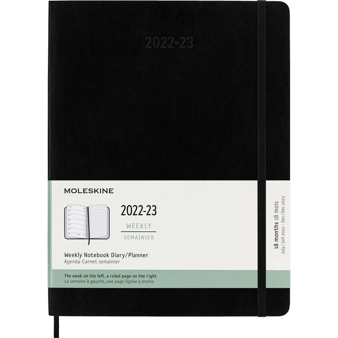 18 month diary from Moleskine. Extra Large size with hard cover. Starts July 2022 and ends December 2023