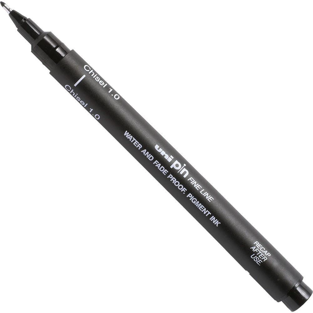 Part of the uni-PIN fine line pen family and containing fade-resistant pigment ink. This elegant, slim chisel tip pen is perfect for neat, refined calligraphy.