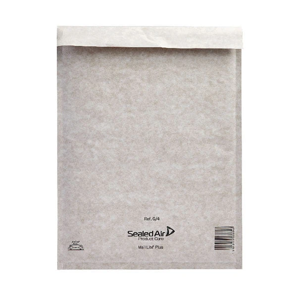 These Mail Lite Plus postal bags feature a strong, oyster white Kraft outer and AirCap® bubble lining for puncture resistant protection of delicate and fragile items during transit. These size G/4 bags measure 240 x 330mm. This pack contains 50 white postal bags with a self seal closure.
