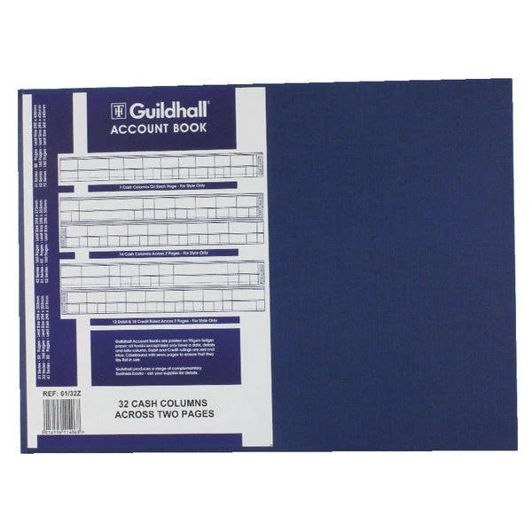 This Exacompta Guildhall Account book is the versatile and comprehensive solution for recording your financial accounts. Bound in hardwearing vinyl, this book has tamper-proof sewn binding that make it impossible to remove pages without compromising the book’s structure. Precision ruled with 32 cash columns for simple yet effective record keeping perfect for analysis and close inspection. With 80 pages per book made from high quality paper that protect against ink show-through.