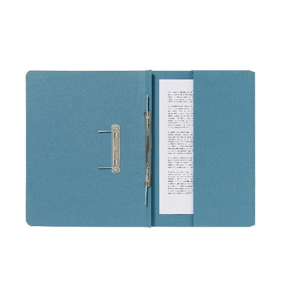 These strong 285gsm folders create a stylish filing solution for reports, presentations and more and are ideal for use in the office, home or classroom. The metal spiral fitting secures punched papers in place and allows them to be worked on whilst in the file. The useful pocket also allows you to store unpunched papers. These colourful files can be used as part of a colour coordinated filing system and have a 350 sheet capacity. This pack contains 25 foolscap files in blue.