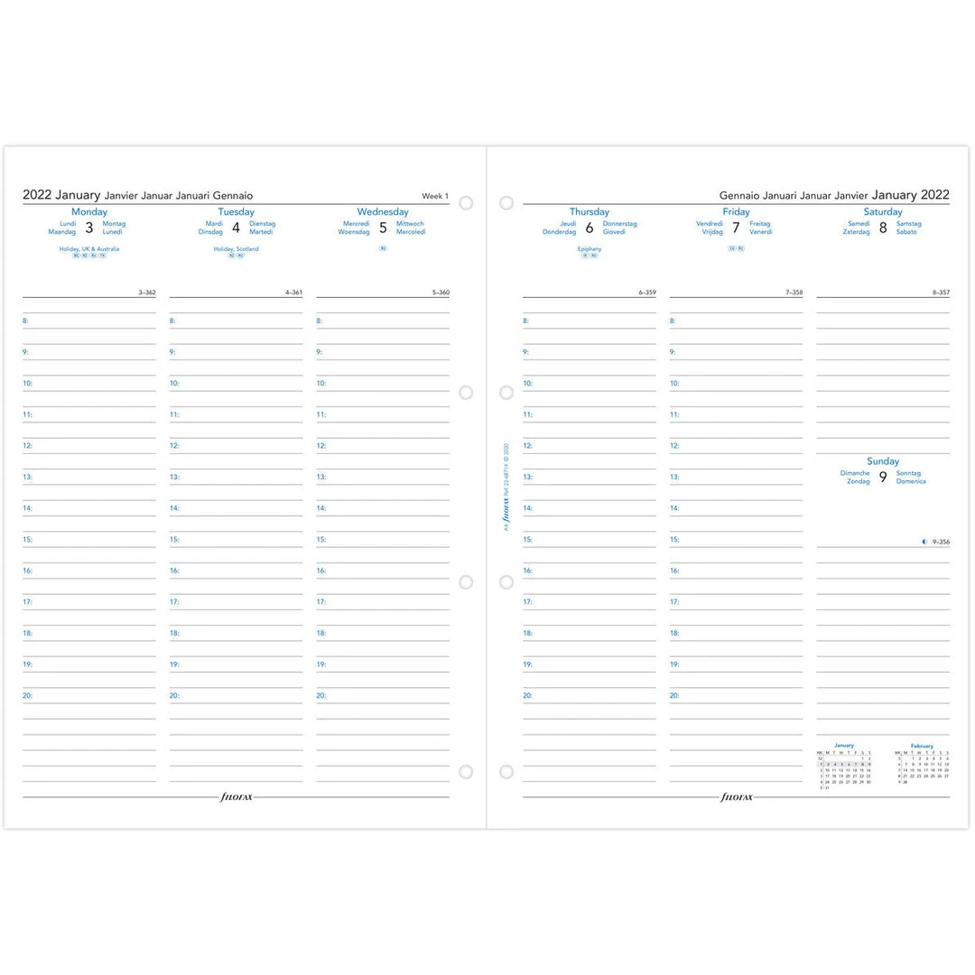 Filofax A4 Week On Two Pages 5 Language Column Format Appointments 2022 Diary Refill
