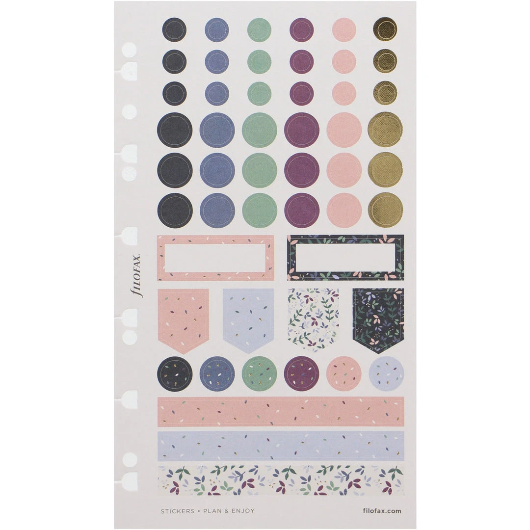 Add a burst of joyful florals to your plans with this sticker set from our Garden Collection. Stickers are repositionable and printed on a matt finish, so that you can easily write on them with pens and markers. This set has been specially designed to fit your A5 or Personal Filofax Organiser or Clipbook or your A5 Refillable Notebook. Includes two decorative sticker sheets, two functional sticker sheets and two planning sticker sheets in Pink, Blue, Purple and Green colours with gold foil accents.