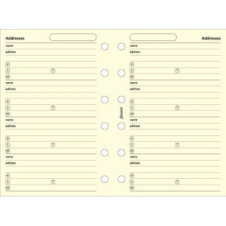 Filofax Refill Pocket Cotton cream name, address, email, telephone, fax, mobile