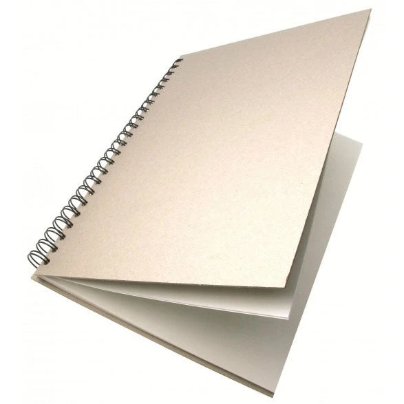 An A5 spiral bound cartridge pad with a hard backed greyboard front and back cover, containing 150gsm acid free cartridge paper. Long edge bound.