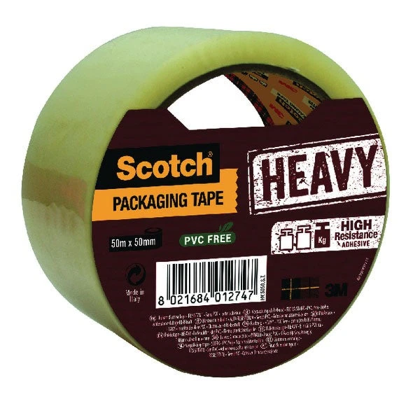 This Scotch heavy duty packaging tape is ideal for sealing boxes, parcels, envelopes and more. Made from durable polypropylene, the tape is PVC free and features a high resistance adhesive for long lasting use. This clear tape measures 50mm x 50m. This pack contains 1 roll of tape.