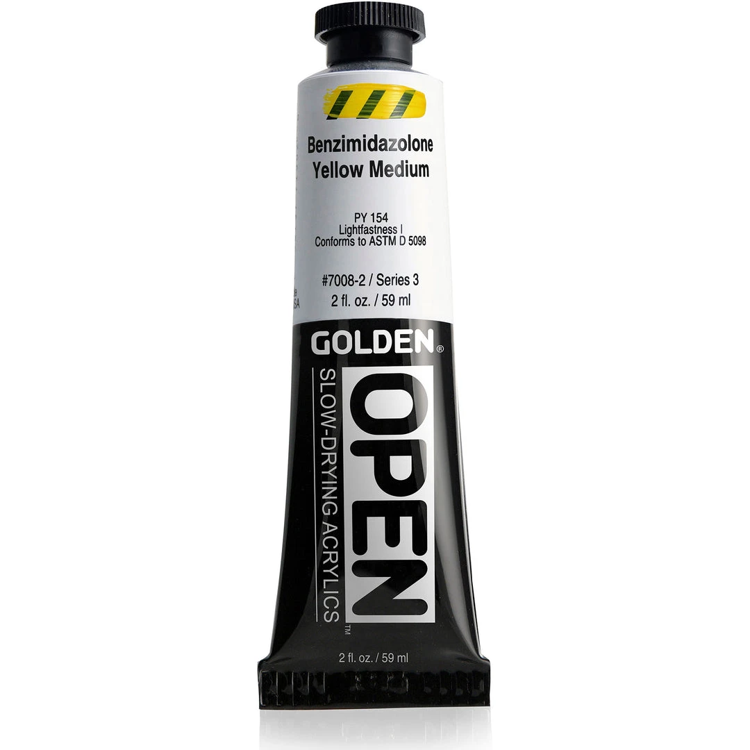 Golden OPEN Acrylics are a slow-drying paint with a slightly softer consistency than our Heavy Body paints. The increased working time of these colors expands their range to include more traditional techniques once only possible with oils. Thick applications can dry extremely slowly, so we recommend artists only use OPEN Colors thinly (< 1 mm). Drying time can also be accelerated by mixing OPEN with faster-drying acrylics like our Fluid and Heavy Body colors. The slow-drying capability of OPEN Acrylics also makes the suitable for some printmaking techniques.