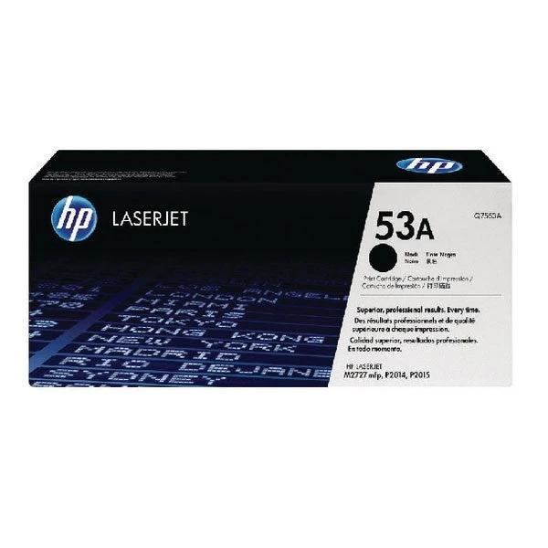 Installing a genuine HP 53A LaserJet Toner Cartridge (Q7553A) ensures exceptional quality and reliability from your HP LaserJet printer. This cartridge uses high quality toner that gives you crisp text and detailed monochrome images across a range of applications, including letters, presentations and brochures. Because it’s a genuine HP cartridge, it ensures unbeatable reliability and efficiency – giving you fast, trouble-free print operations.