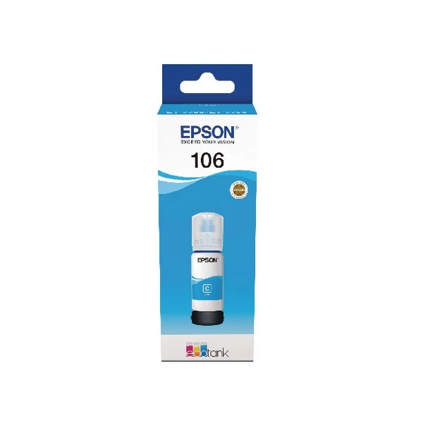 This Epson 106 EcoTank Ink Bottle ensures high quality print output from your Epson EcoTank inkjet printer. As a genuine Epson consumable, it ensures consistent and reliable operation for trouble-free printing when you need it most, and is packed with 70ml of cyan ink. Epson ensures that every cartridge meets its high standards and works with your machine to provide precise, clear printing.