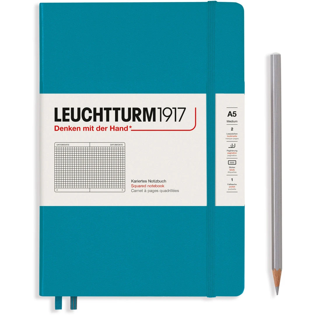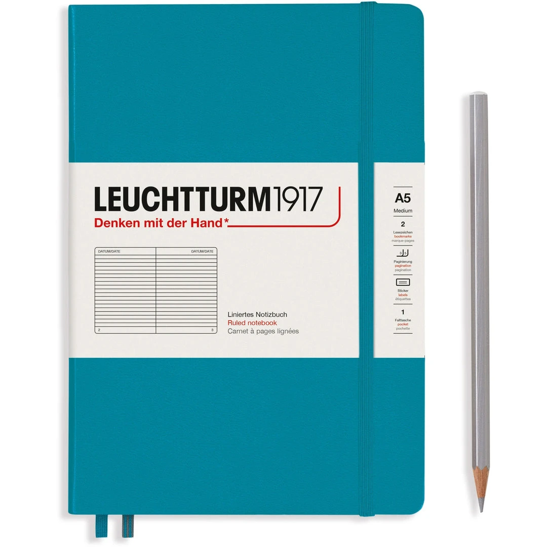 The classic notebook: Available with a variety of colours and features: The Leuchtturm Medium (A5) notebook is not only a perfect size, it is available in a whole host of colours and different types of ruling. Many of the special editions come in this standard notebook size.