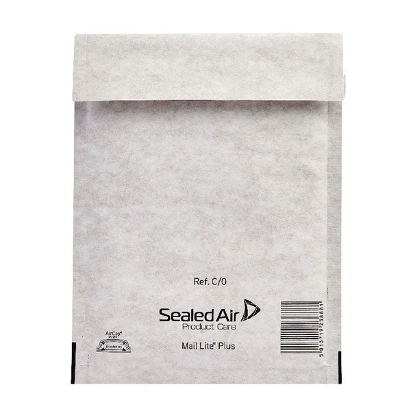 These Mail Lite Plus postal bags feature a strong, oyster white Kraft outer and AirCap bubble lining for puncture resistant protection of delicate and fragile items during transit. These size C/0 bags measure 150 x 210mm. This pack contains 100 white postal bags with a self seal closure.