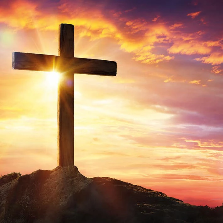 Cross at Sunset Card. Width: 130mm, Height: 130mm, Depth: 2mm.