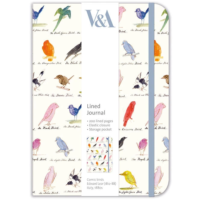 V&A branded ruled notebook journal featuring Edward Lear Birds design. 127mm x 177mm.