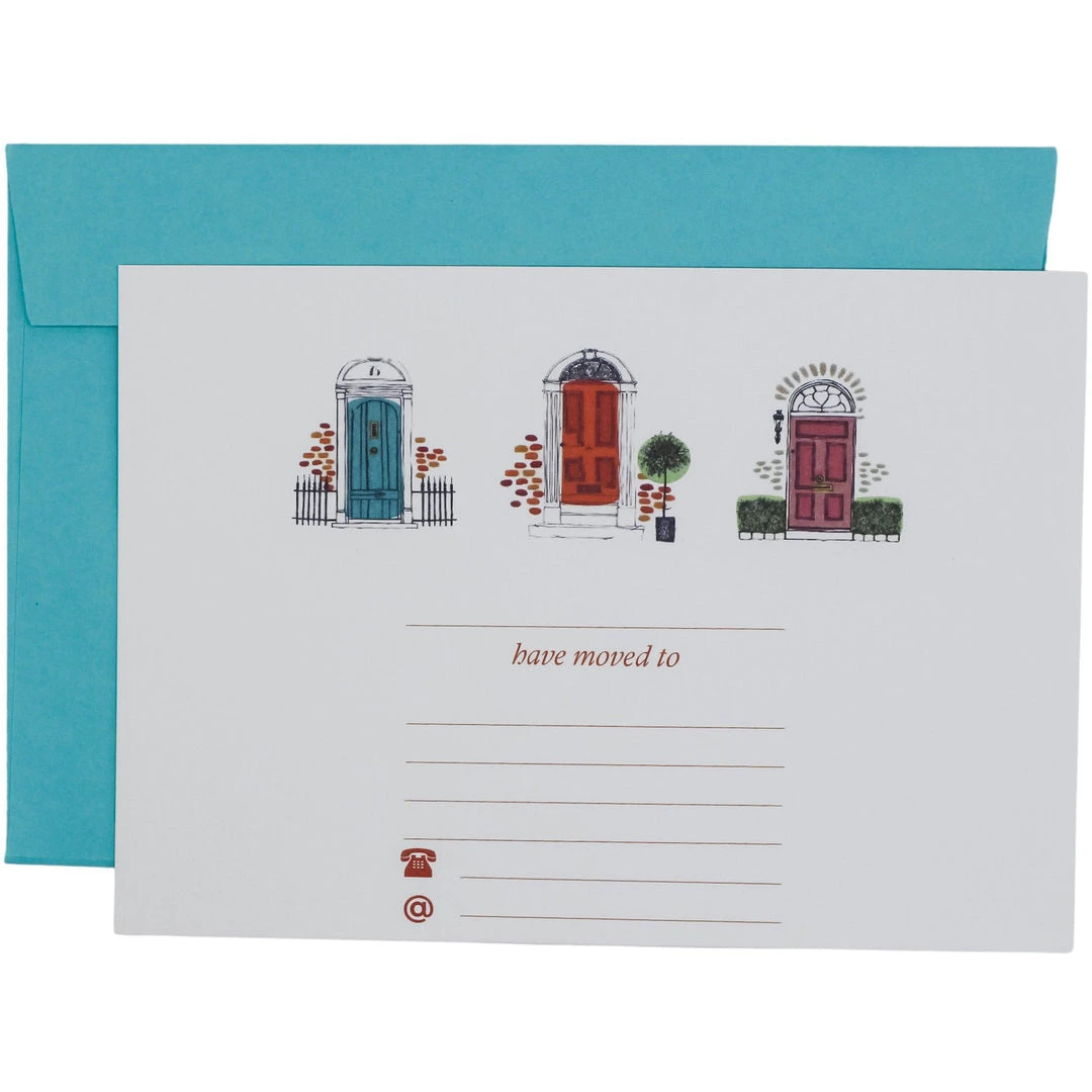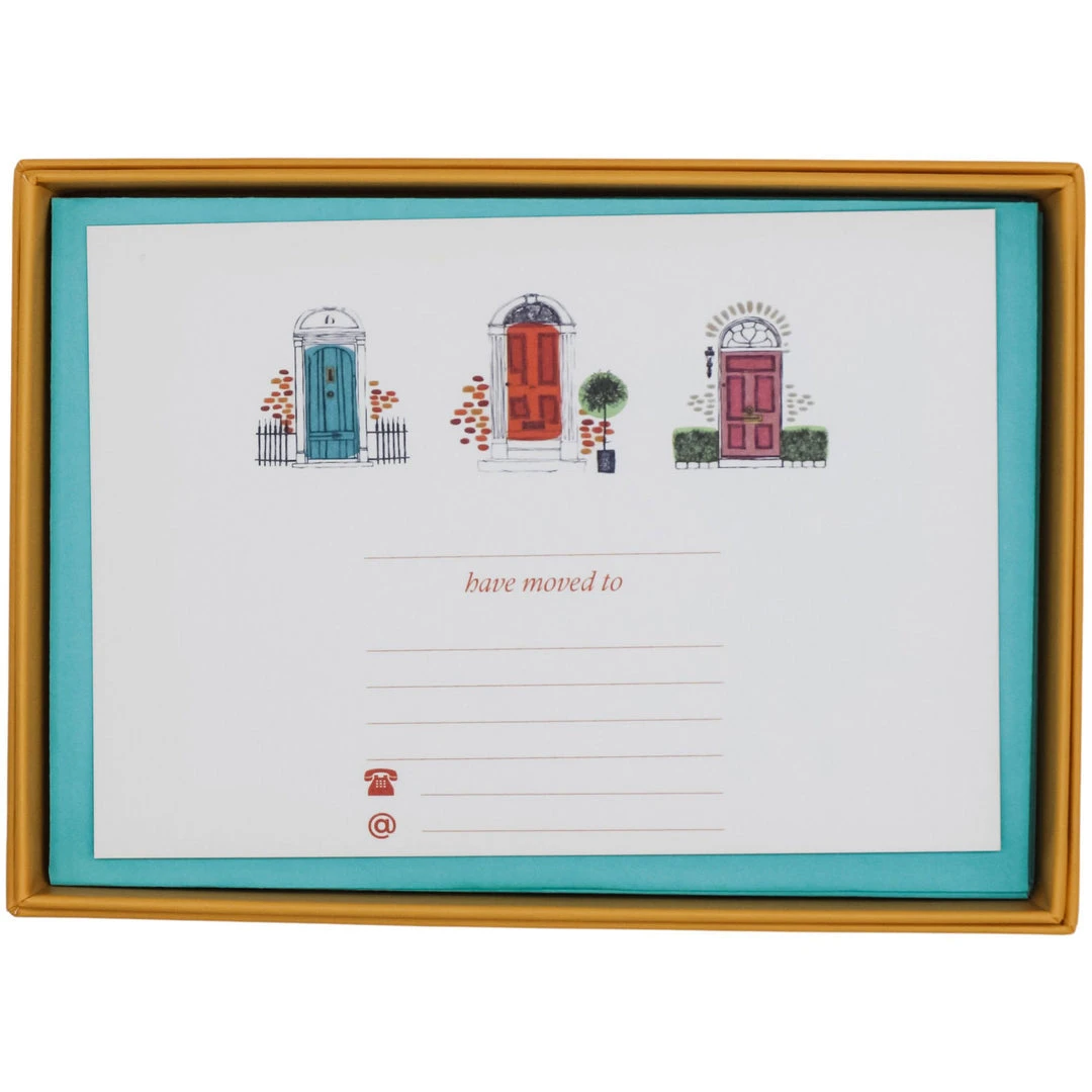 Mustard and Gray Three Doors Down Change of Address Card Set