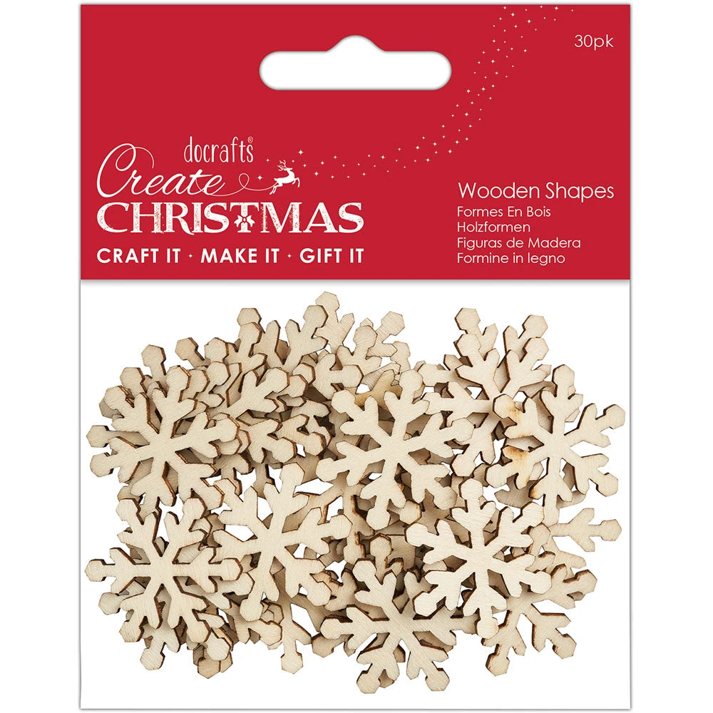 Create Christmas Wooden Shapes (30pcs) – Mini Snowflakes Natural