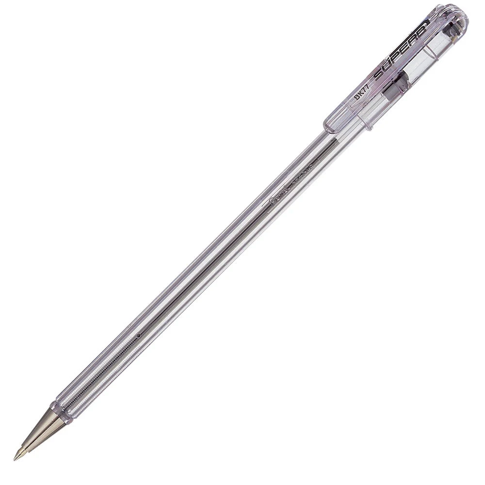 Pentel BK77 Superb ballpoint pen. Rubber nib cleaner in pen cap. Instant inkflow writes smoothly and makes this pen ideal for both shorthand and general use. Fine. Colour Black.