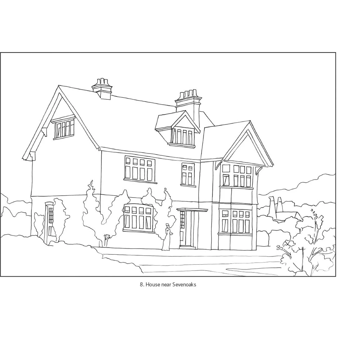 In this colouring book you will find twenty-two drawings of houses, designed by British architects, located throughout many different villages and cities all over England—from Windermere to Hampshire, from Norfolk to London. When you colour the pictures, you can try to copy the original colours and style like images on the inside of the covers. You might decide to use your own. The last page of the book is blank so you can draw and colour your own picture.