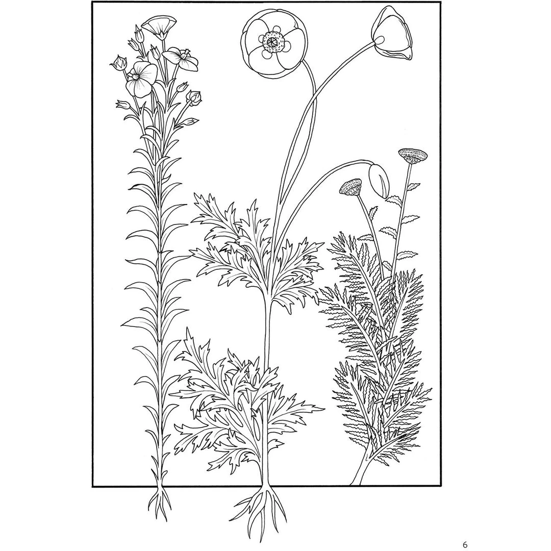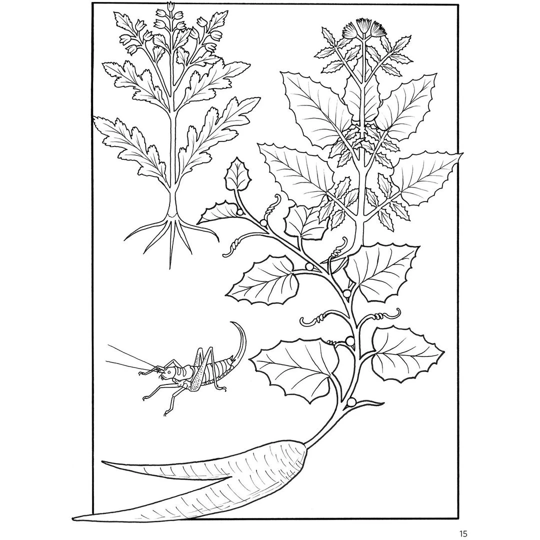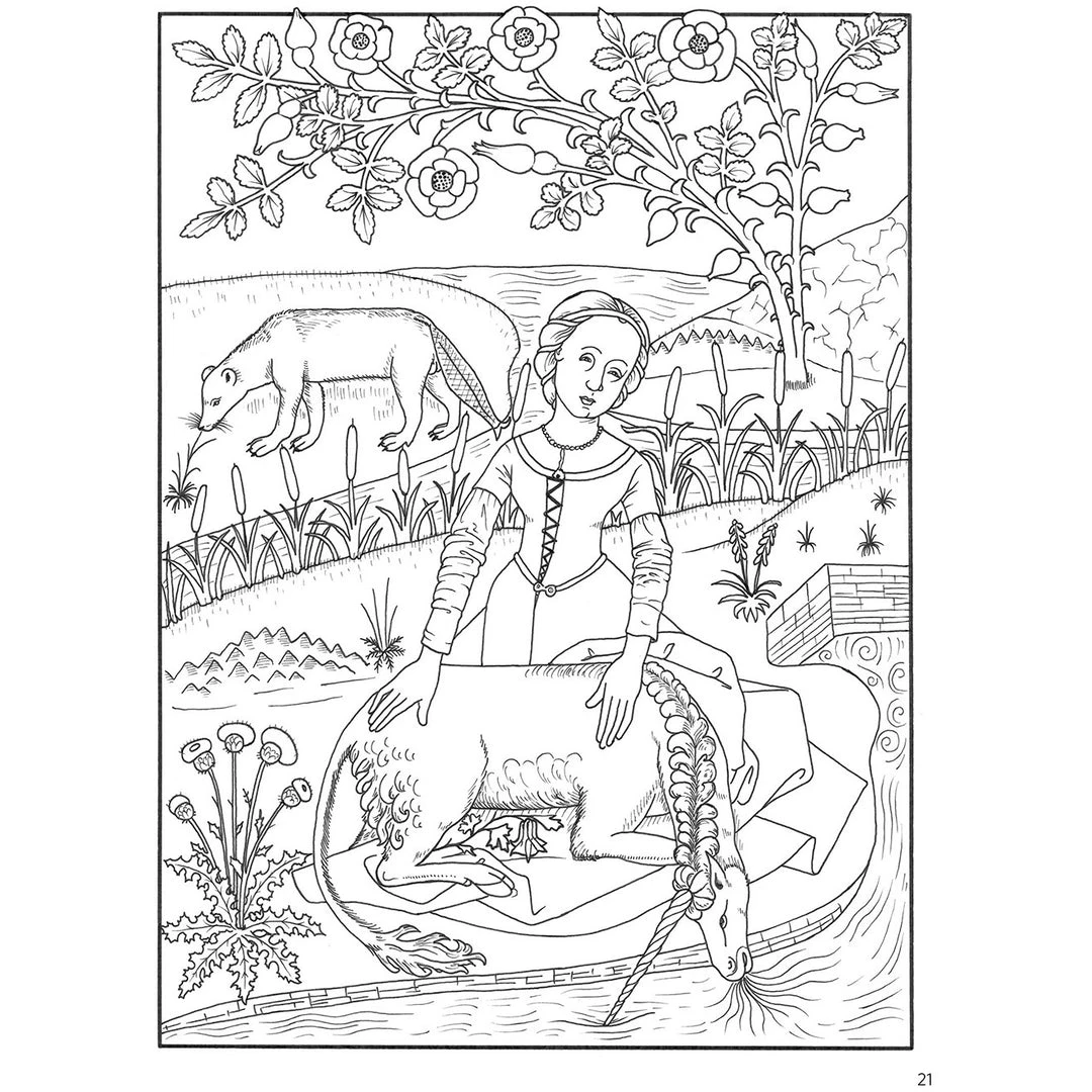 The illustrations reproduced on this coloring book’s inside covers are the work of artist Robinet Testard (fl. 1470–1523). They were selected from Le Livre des simples médecines (c. 1470), created for Louise of Savoy and her husband, Charles d’Angoulême. This vellum manuscript is in the collection of the National Library, St. Petersburg, Russia.