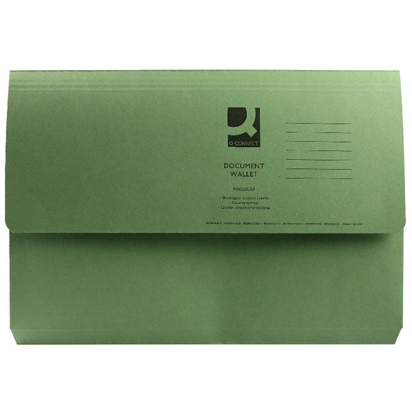This environmentally friendly Q-Connect document wallet is made from 100% recycled, 285gsm manilla with a 30mm capacity for filing A4 or foolscap documents. Ideal for home, office, or classroom use, this pack contains 50 green document wallets, perfect for colour coordinated filing.