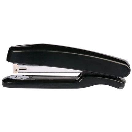 This full strip Q-Connect stapler features a tough metal chassis encased in durable plastic for general stapling tasks at home, school, or in the office. The stapler has a stapling capacity of up to 20 sheets of 80gsm paper and uses standard 26/6mm and 24/6mm staples. This black stapler also features an 80mm throat depth and a simple top loading mechanism.