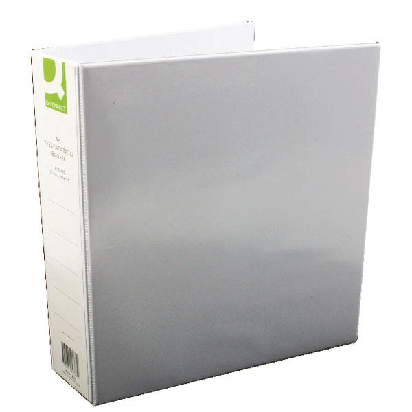 Made from strong welded PVC, this pack of 6 high quality presentation ring binders from Q-Connect will bring a touch of professionalism to your office. They feature full length cover and spine sleeves for adding your own presentation cover. Finished in white, these folders have an easy-open 4 D-ring mechanism for adding and removing papers quickly, with a total capacity of 50mm for storing A4 documents.