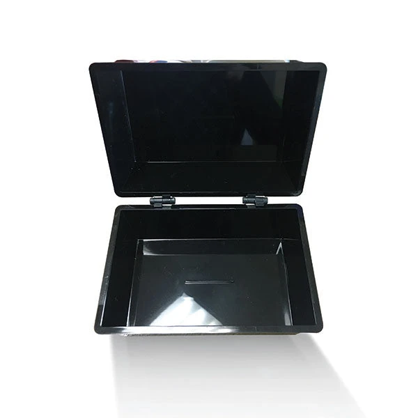 - Hinged lid
