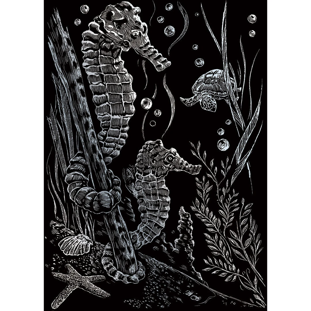 Royal & Langnickel Paint By Numbers And Scraper Board Sets Silver Foil Mini Kit Sea Horses
