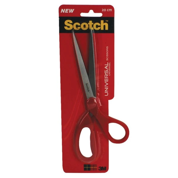 These Scotch Universal Scissors feature stainless steel blades, which resist corrosion for enhanced cutting performance. Designed for both left and right handed use, the 200mm scissors also feature comfortable red plastic handles and have a blade length of 105mm. This pack contains 1 pair of scissors for home or office use.