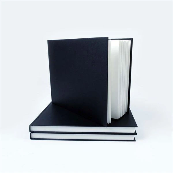 Square 140gsm All-Media Cartridge Paper, acid-free and sized for extra wet-strength. Attractive black cloth cover