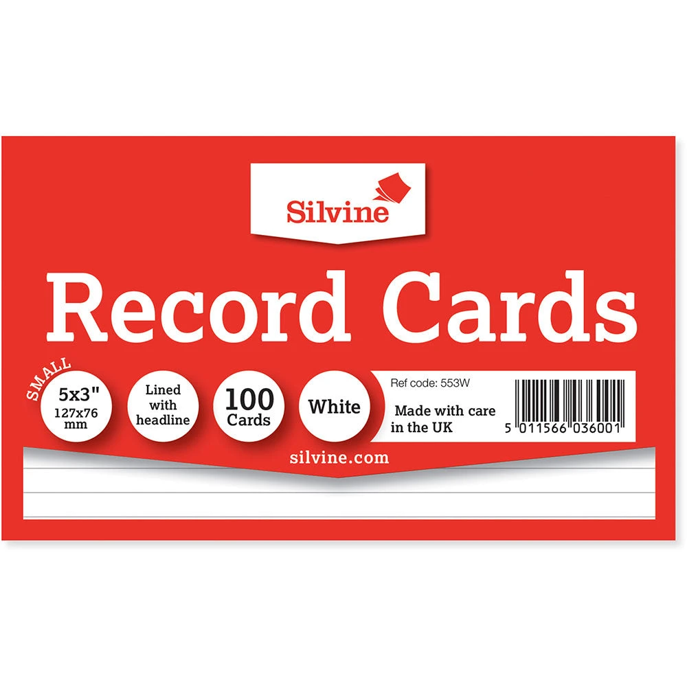 Silvine Revision index cards. Record cards to fit card index boxes. Flash cards to use for school or university study and as revision aids.