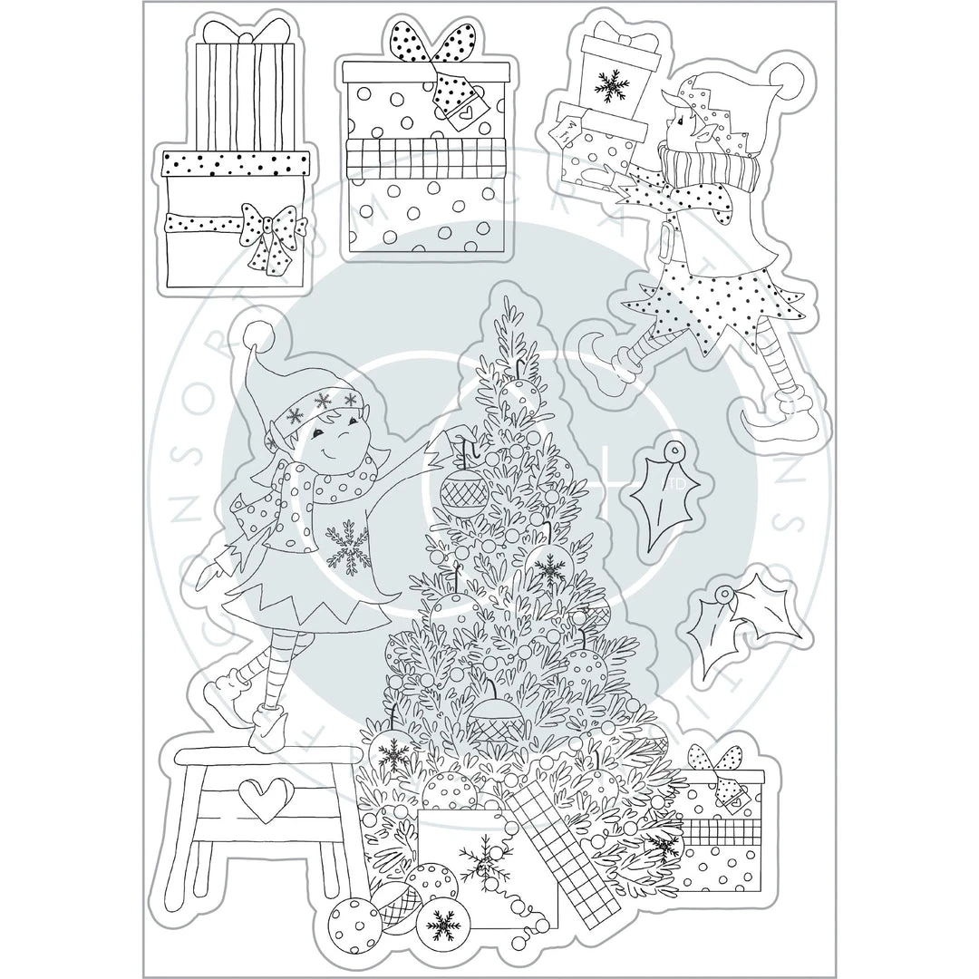 A set of 6 premium clear polymer stamps in coordinating designs. With protective acetate film printed with references.