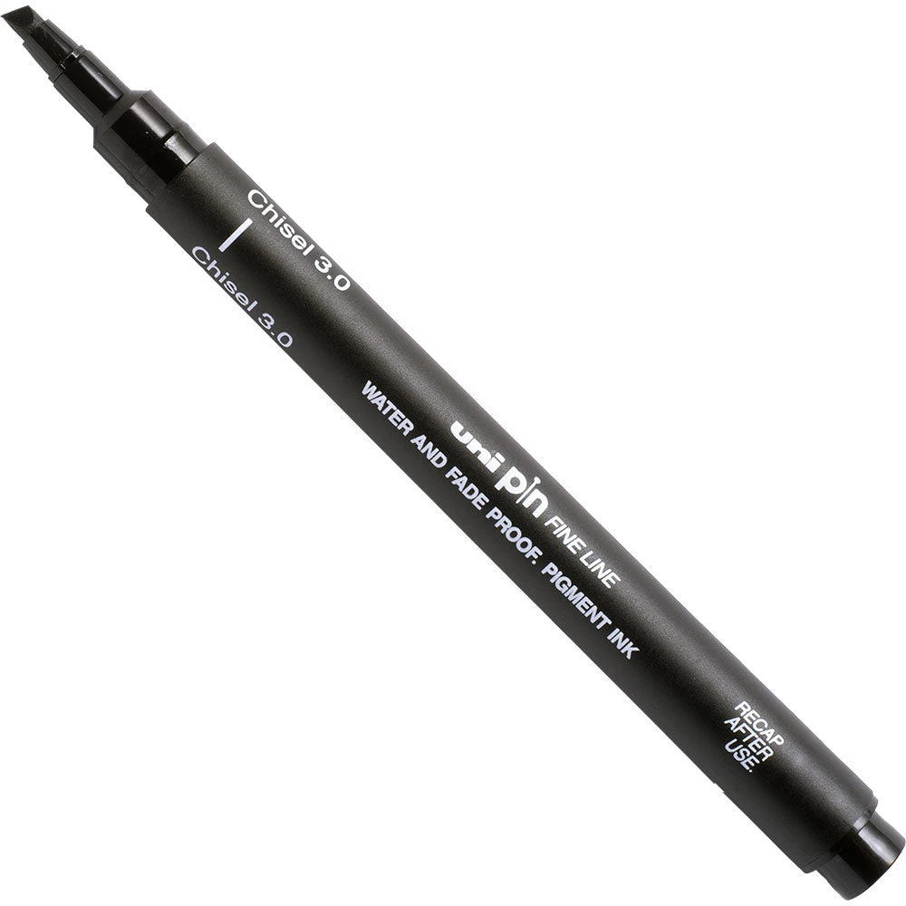 Part of the uni-PIN fine line pen family and containing fade-resistant pigment ink. This 3.0mm chisel tip pen is exactly what you need for eye-catching, generous hand-lettering and calligraphy.