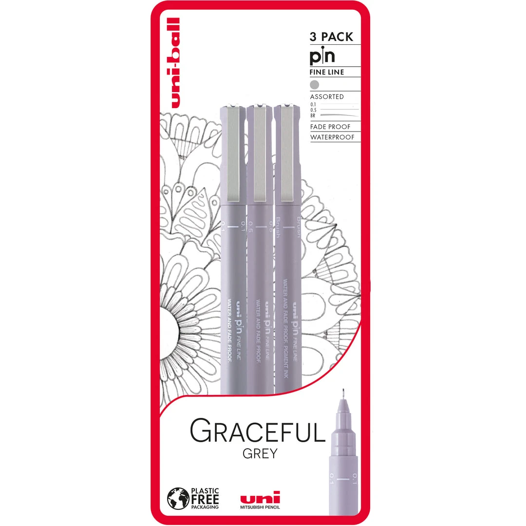 - Contains three Light Grey drawing pens in biodegradable packaging