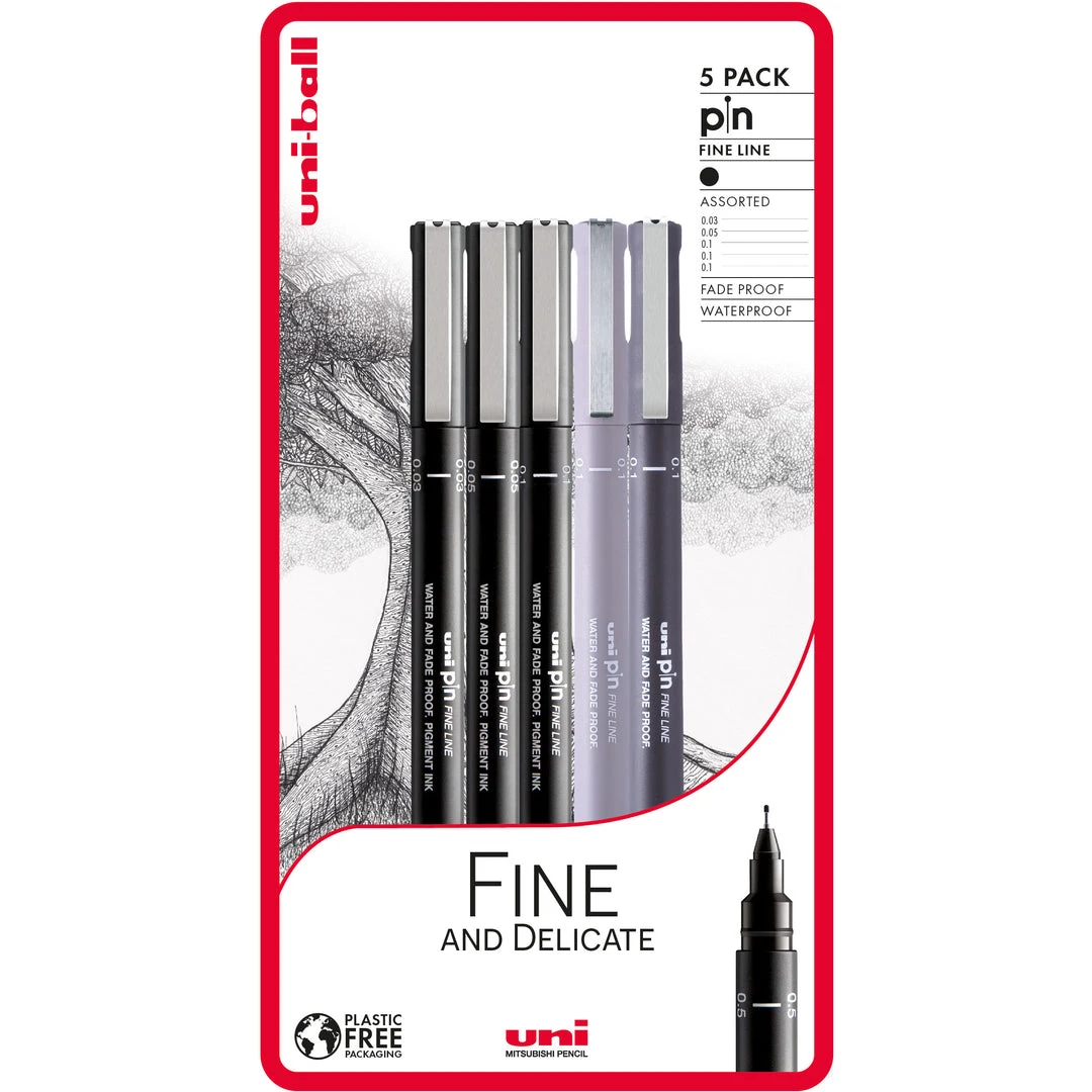 The uni-ball PIN is an excellent artists pen. The fineliners contains fade proof Super Ink so your creations will last. The fine tip pen creates a solid pigment ink line that is clean and precise. The ink is water resistant too so the drawing pens can be used with watercolour and will not smudge when wet.