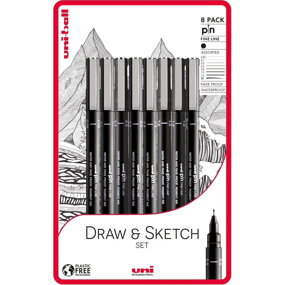 The uni-ball PIN is an excellent artists pen. The fineliners contains fade proof Super Ink so your creations will last. The fine tip pen creates a solid pigment ink line that is clean and precise. The ink is water resistant too so the drawing pens can be used with watercolour and will not smudge when wet.