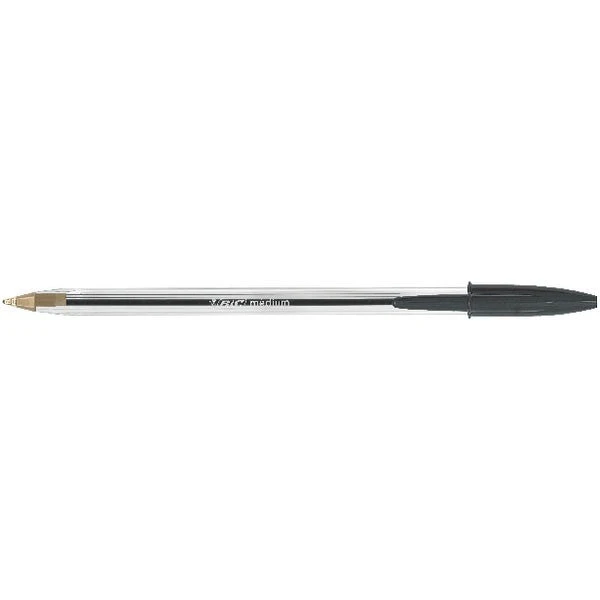 These Bic Cristal Ballpoint Pens feature a durable tungsten carbide ball mechanism and smooth oil-based ink for reliable, everyday use. The medium 1.0mm tip produces a thin 0.4mm line for elegant handwriting and detailed sketching. The hexagonal barrel includes a black cap and end plug that matches the ink for easy identification.